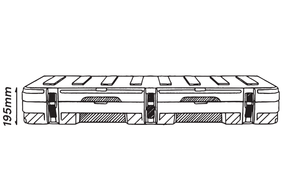 THIS EXTREMELY LOW PROFILE & HEAVY DUTY STORAGE CASE IS DESIGNED TO BE MOUNTED UP TOP ON YOUR VEHICLE'S ROOF PLATFORM/RACK, OR AS A SLIM STORAGE OPTION IN THE BOOT OR UTE TRAY.